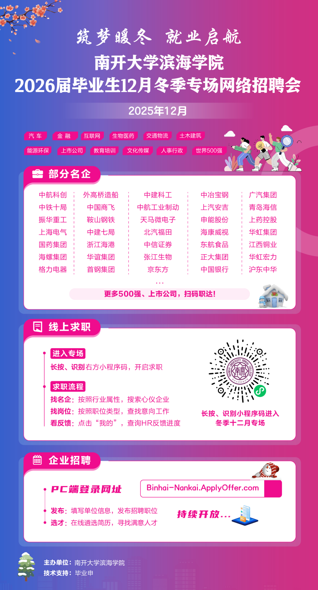筑梦暖冬 就业启航 | 南开大学滨海学院2026届毕业生12月冬季专场网络招聘会